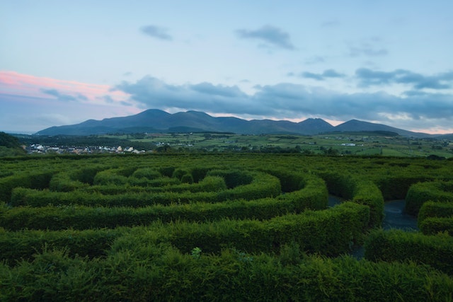 Maze designers often collaborate with farmers to transform a towering green maze into something spectacular. They provide designs that range from patterns and shapes to animals, landscapes, and landmark depictions.
