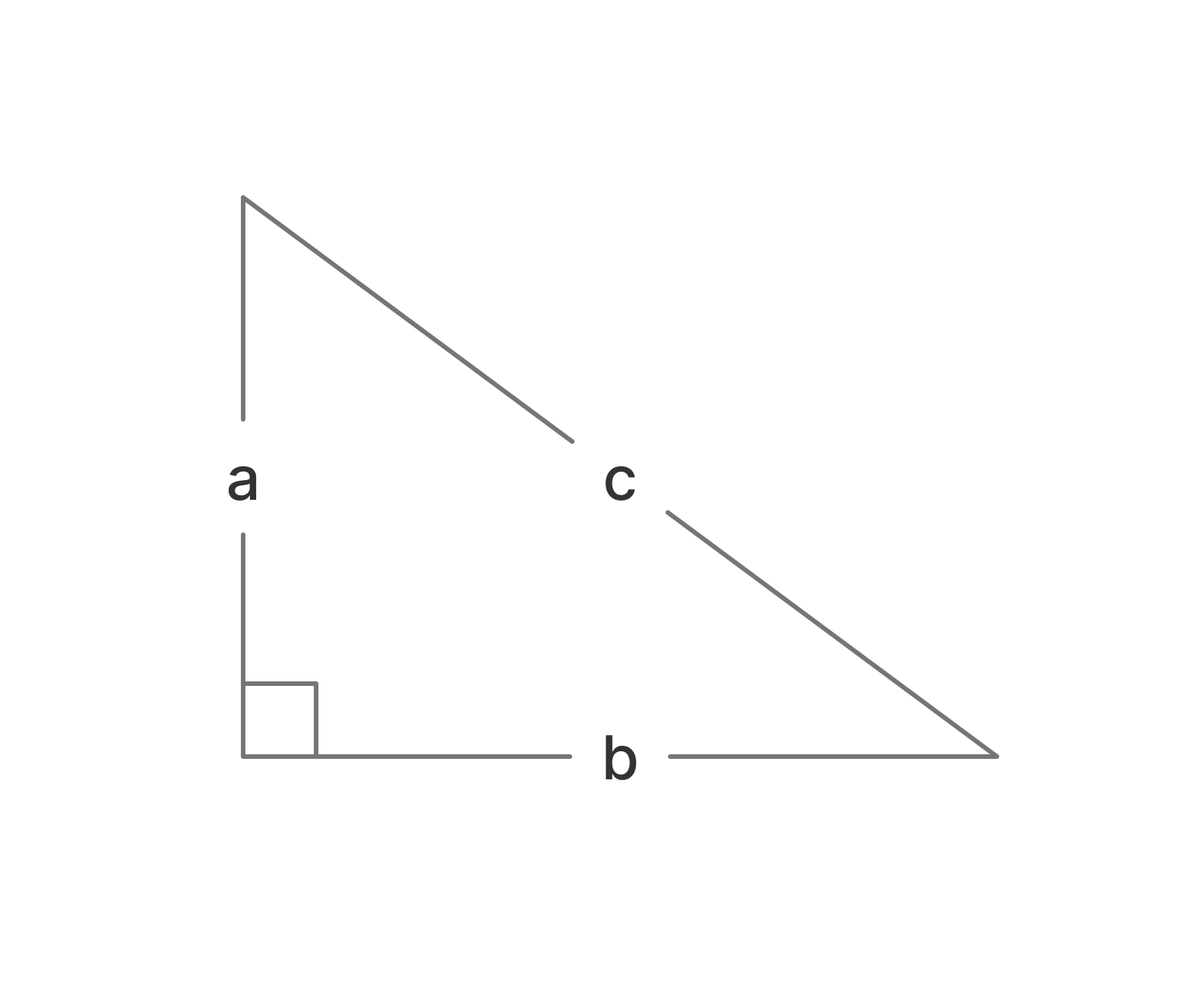 The parameters “a” and “b” are the lengths of the two sides that meet at the right angle, and “c” is the hypotenuse, which is the line segment between the two points.
